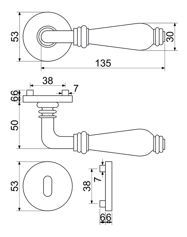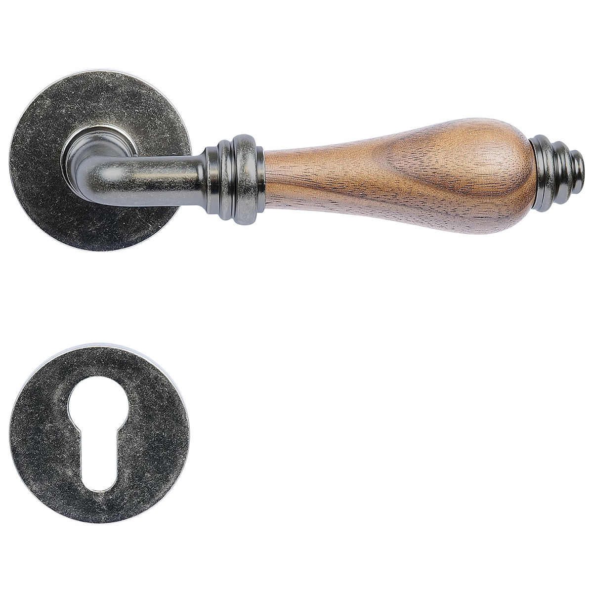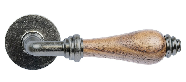 Bergamo je zamakové kování na kulatých rozetách s vratnou pružinou klik.