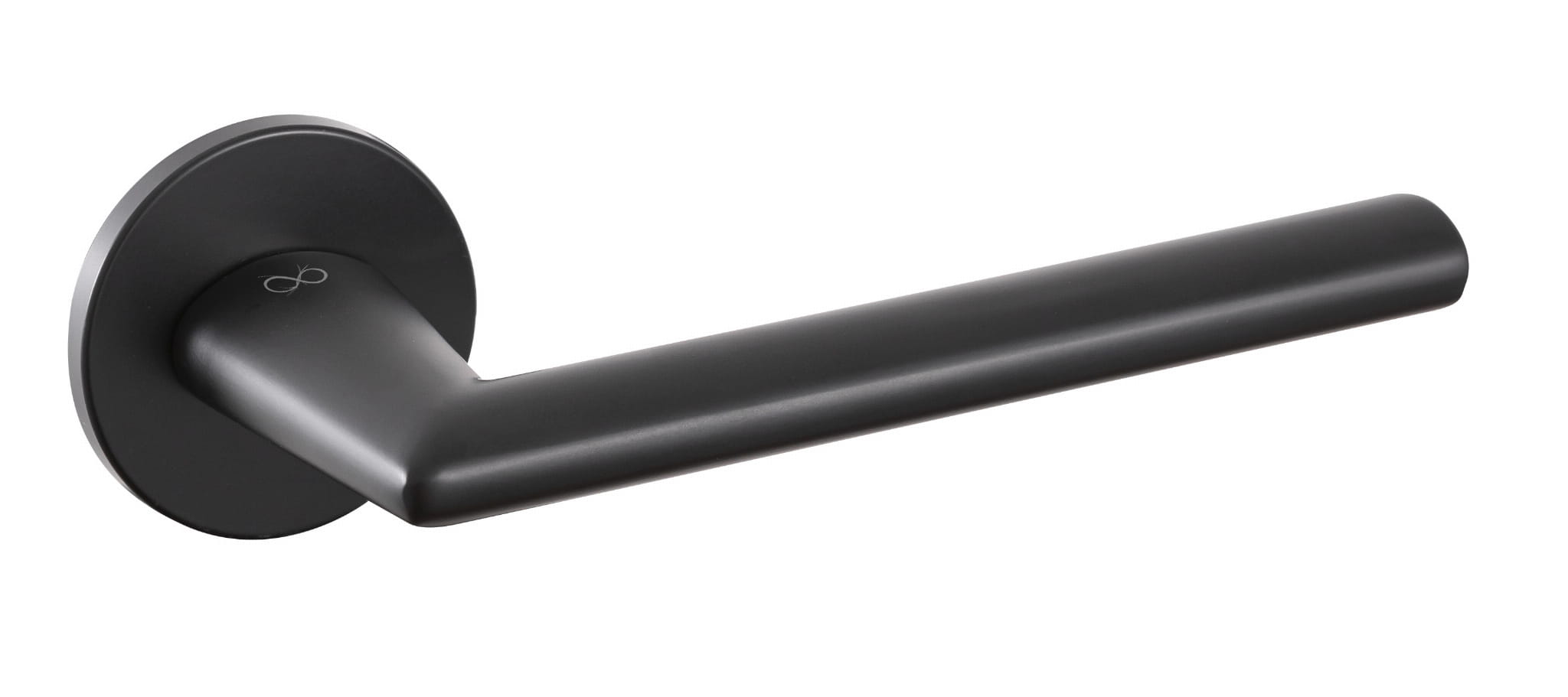 Dveřní klika Eva KEVA O BOO černá - rozetové kování je moderní interiérové kování s kulatou rozetou. Tato novinka z řady SLIM se pyšní neuvěřitelně tenkou rozetou – pouhých 5 mm.