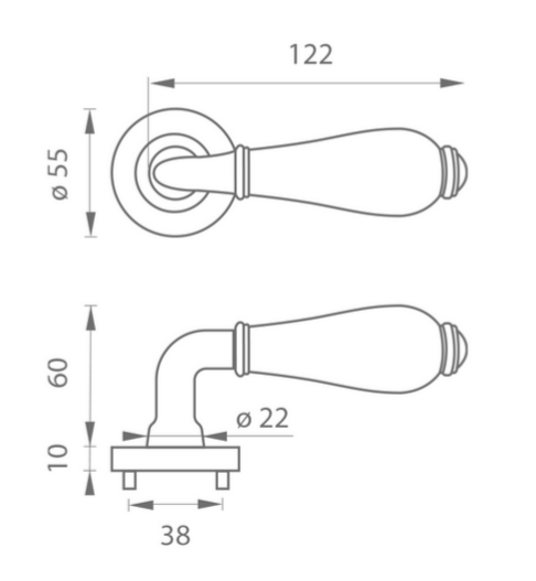 Rozetová klika na interiérové dveře s kulatou rozetou je vyrobená odléváním z kvalitní slitiny zinku v kombinaci s keramikou a je povrchově upravená.