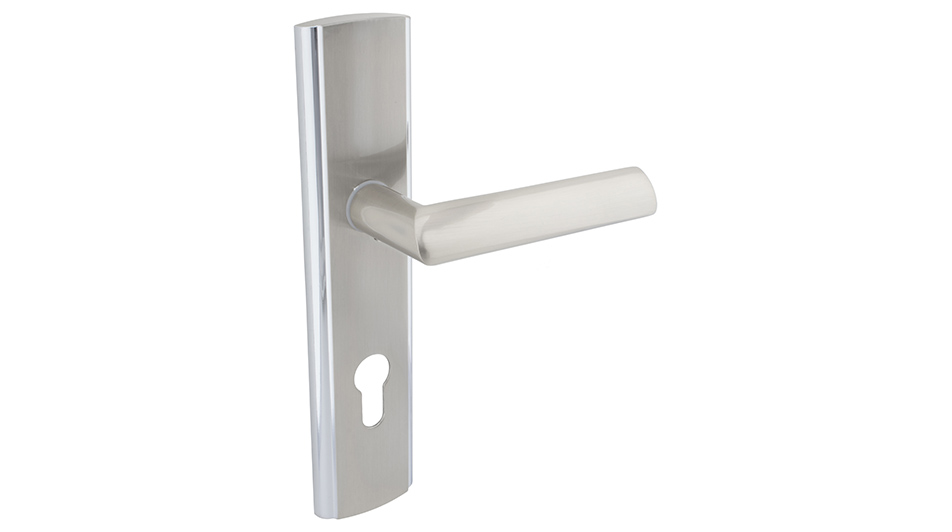 Vchodové kování Mati se vyrábí v rozteči 72mm a ve třech barvách -  nikl/chrom, patina a v barvě černé.