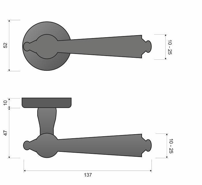 Rozety si můžete vybrat na dózický klíč, na vložku nebo WC. Kování má záruku 24 měsíců a cena je za celý komplet, tj. pro obě strany dveří + příslušenství k montáži.