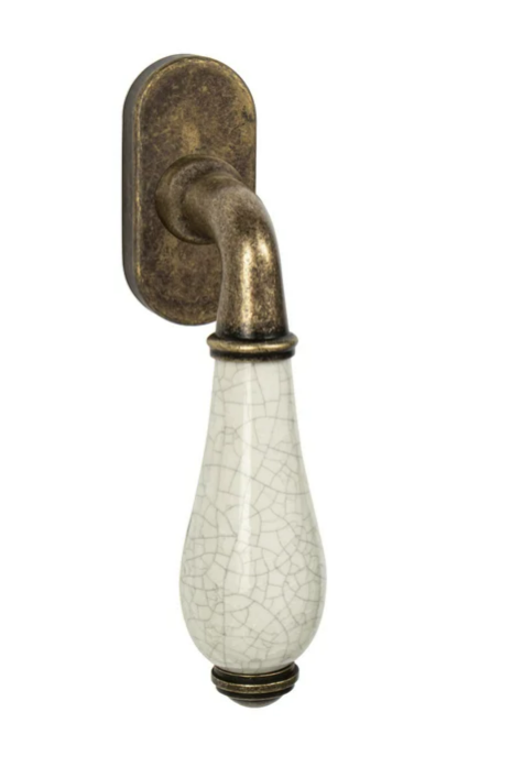 Klika na eurookno s rustikální rozetou je vyrobená odléváním z kvalitní slitiny zinku v kombinaci s keramikou a je povrchově upravená.