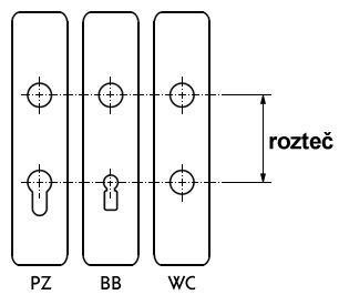 · U štítového nebo vchodového kování velikost rozteče musíte znát.