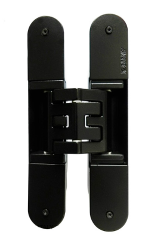 Dvoudílny skrytý závěs K5080 s nosností 80kg na 2 závěsy, úhel otevření 180°, min.tl.dveří 40mm. Barva pantu:černá