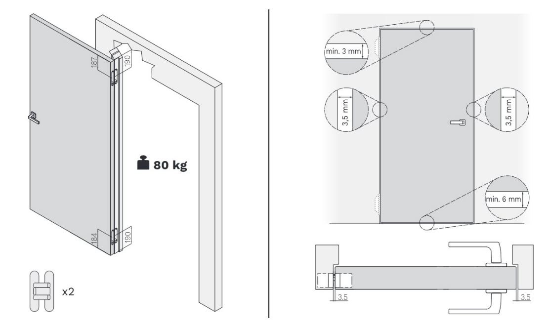 zobrazit více3D seřiditelný skrytý závěs pro bezfalcové dveře vhodný do masivních, obložkových i kovových zárubní.